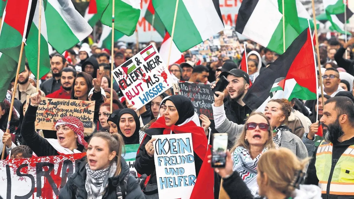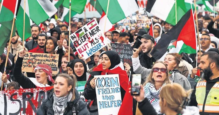 Avusturya'da binlerce kişi meydanlara indi. Göstericiler, "Almanya finanse ediyor, İsrail bombalıyor", "Filistin'e özgürlük", "Terörist İsrail" ve "Soykırımı durdurun" sloganları attı.