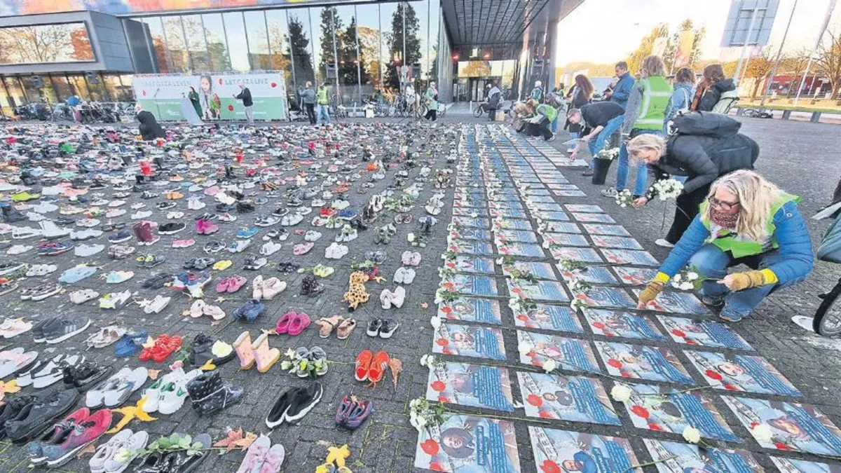 Gazze'ye yönelik işgal ve soykırım saldırısı protesto edildi. Meydana, saldırılarda ölen 18 bin çocuğun anısına yaklaşık 4 bin ayakkabı ve bölgede ölen 194 gazetecinin fotoğrafları bırakıldı. Bir Zeytin Ağacı Dik Vakfı'nın organizasyonunda İsrail katliamına dikkat çekilip, duyarlılık çağrısında da bulunuldu.