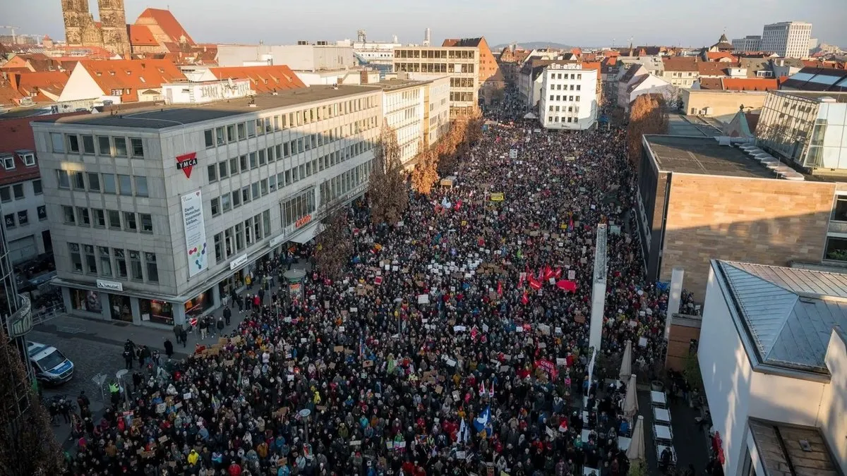 Demokrasi ve çeşitlilik için yürüyenler, ırkçıları kınamanın yanı sıra Hıristiyan Demokrat Birlik Partisi (CDU) lideri ve CDU/CSU'nun başbakan adayı Friedrich Merz'i hedef alan dövizler taşıdı. Münih'in yanı sıra Bremen, Hannover, Minden, Dortmund, Paderborn ve Bielefeld gibi birçok şehirde de gösteriler düzenlendi.