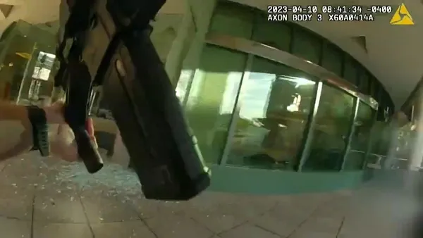 Louisville Metro Polis Departmanı (LMPD), 10 Nisan'da eyaletin Louisville şehrindeki bir bankaya yönelik düzenlenen silahlı saldırıya müdahale eden polis memurlarının vücut kamerasınca kaydedilen görüntüleri paylaştı. Görüntülerde saldırının meydana geldiği yerin harita üzerinde gösterimi, polis ekiplerinin olay yerine gelişi, silahlı saldırganın bankanın içinden görüntüsü ve polislerin müdahale anları görülüyor.