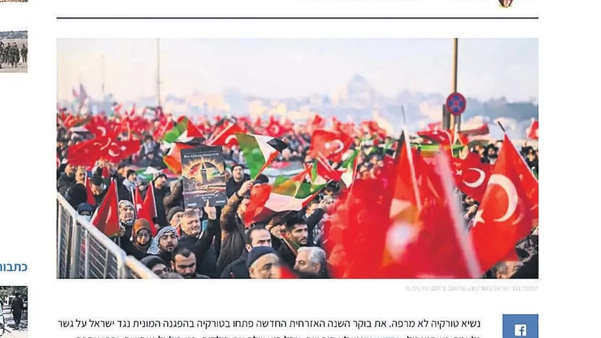 İsrail basını Türkiye'ye odaklanmış durumda. Yılın ilk günü barbar İsrail ordusunun Gazze Şeridi'ndeki soykırımına dur demek için İstanbul'daki Galata Köprüsü'nde düzenlenen dev Gazze yürüyüşü İsrail'de büyük yankı uyandırdı. Türkiye Gençlik Vakfı (TÜGVA) öncülüğünde 308 sivil toplum kuruluşunun katılımıyla Filistin için "Dün Ayasofya, Bugün Emevi, Yarın Aksa" sloganları ile düzenlenen yürüyüş İsrail basınını korkuttu. Makor Rishon gazetesi, Fazit Rabina imzalı ve "İmparatorluk yeniden saldırıyor: Erdoğan'ı ciddiye almanın zamanı geldi" başlıklı bir haber yayımladı.