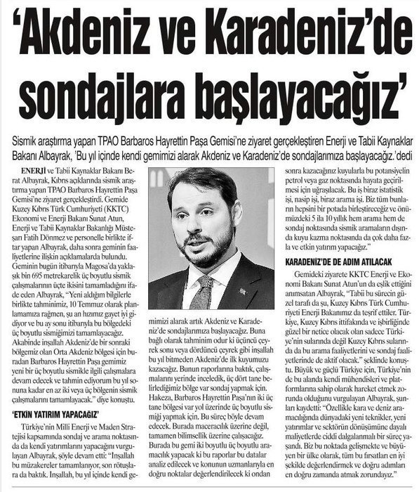 Berat Albayrak, o dönem Enerji ve Tabii Kaynaklar Bakanlığı görevini yürütüyordu.