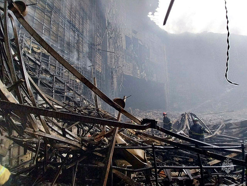 Patlamanın ardından binada büyük bir yangın çıkarken, konser salonunun yaklaşık üçte biri alevler içinde kaldı. Bir kısmı da çöken binada 143 kişi hayatını kaybetti. Saldırıyı gerçekleştiren 4 terörist ile birlikte 11 kişi gözaltına alındı. Soruşturma devam ederken IŞİD'in Horasan Grubu, saldırıyı üstlendi. Saldırıyı gerçekleştiren teröristler Türkiye'de ve İran'da eylem yapan yapan aynı DEAŞ'ın aynı hücresinden çıktı.