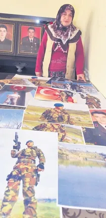 Evin her köşesini şehit oğlunun eşyaları ve fotoğraflarıyla donatan Saniye Özdoğan: "Her sabah oğlunun duvardaki fotoğraflarına 'Günaydın' diyerek güne başlıyorum. Akşam da Fatiha okuyarak yatıyorum."
