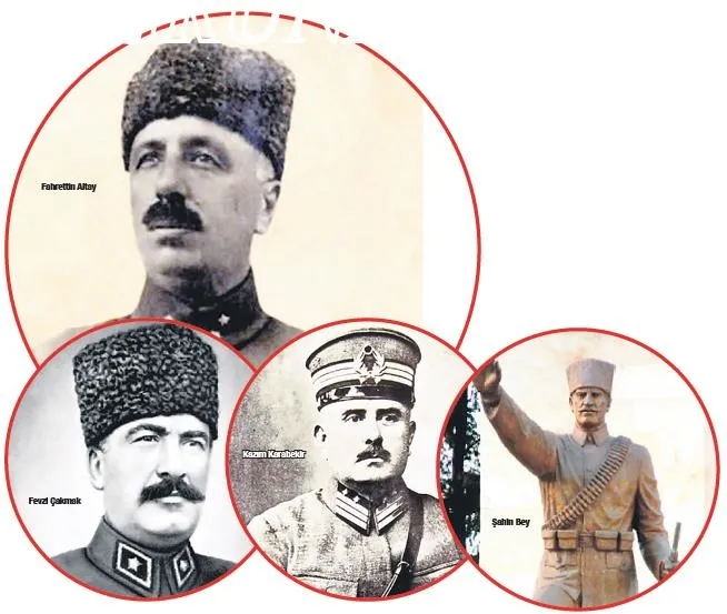Şahin Bey: asıl adı Mehmet Sait olan Şahin Bey, Fransız işgal kuvvetlerine erzak taşıyan yüz elli arabalık konvoyu bozguna uğratarak Antep'in kurtuluş mücadelesi başlatarak "Düşman cesedimi çiğnemeden Antep'e giremez!" sözüyle tarihe geçti. Sütçü İmam: Kahramanmaraş'ta süt satarak ve imamlık yaparak geçimini sağladığı için asıl adı olan Ali yerine Sütçü İmam olarak tanınmıştır. Düşman askerlerinin 3 Türk kadınına saldırıp peçelerini açmak istemeleri üzerine düşmana ilk kurşunu atan Sütçü İmam, Kahramanmaraş'taki Kurtuluş hareketini başlattı. Mareşal Fevzi Çakmak: Türkiye'nin Atatürk'ten sonra ikinci ve son mareşali olan Fevzi Çakmak, milli mücadelenin en önemli simalarındandı. İstiklal mücadelesinde özellikle de Sakarya Meydan Muharebesi, Büyük Taarruz ve Başkomutanlık Meydan Muharebesi'nde büyük katkılarıyla anılan kahramanımızdır.