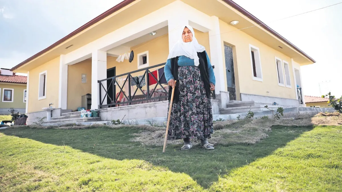 Hatay'ın Altınözü ilçesi Babatorun Mahallesi'nde yaşayan 6 çocuk annesi Naime Yiğit, 60 yıl önce gelin olarak geldiği evde deprem felaketini yaşadı. Deprem, 20 torun sahibi yaşlı kadının sadece yuvasını değil hatıralarını da yıktı... İki katlı evi ağır hasar alan depremzede kadın, bir süre oğlu Mehmet'in evinde kaldı. Devlet, TOKİ eliyle 9 ay gibi bir sürede köy evlerini tamamladı. 25 köy evinin noter huzurunda çekilişi yapıldı. Yeni evlerine kavuşan depremzedeler arasında Naime ninenin de adı vardı. Oturduğu evin bir kilometre ilerisine TOKİ tarafından yapılan ve "Sarayım" dediği köy evine yerleşen Naime Yiğit, zaman zaman terk etmek zorunda kaldığı eski evine gidip anılarını tazeliyor. Gençliğinin geçtiği eski evine gözyaşları içinde bakan Naime nine, oğlu Mehmet ile torunları Abdullah (13) ve İdo'ya (4) sarılıp sohbet ettikten sonra yeni evinin yolunu tuttu.