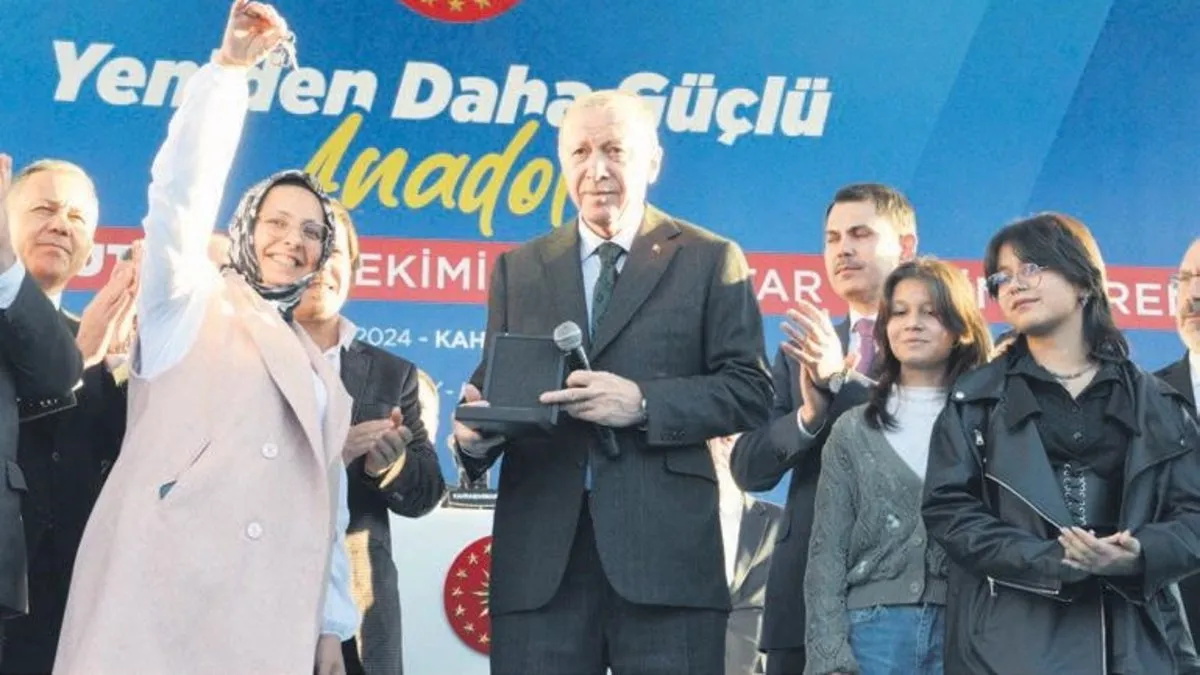202 BİN KONUT TESLİMİ: 453 bin hak sahibi vatandaşımız için 419 bin 35 konutun, işyerinin inşasını başlattık. Milletimize 155 bininci konutun anahtarlarını teslim ettik. Hak sahibi vatandaşlarımız için inşa edilmesi gereken konutların yüzde 93'ünün inşası başlamıştır. Bu yıl sonu itibarıyla yani yirmi gün sonra konutların yüzde 45'i de vatandaşlarımıza teslim edilecektir. Bu sayıyı 202 bine çıkaracağız. Bu da yaklaşık 1 milyon depremzede ailemizin yeni yıla sıcak yuvalarında gireceği anlamına geliyor.
