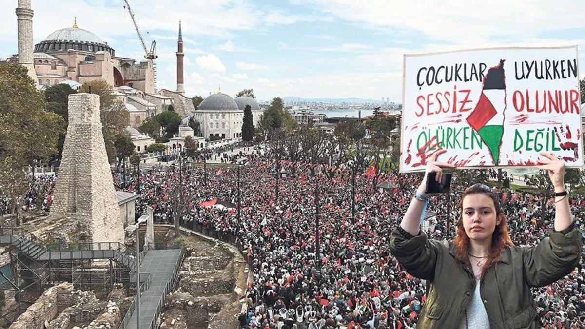 Terör devleti İsrail’in Gazze’deki katliamlarına tepkiler, Küresel Sumud Filosu’na müdahalenin ardından çığ gibi büyüdü. Başta İstanbul ve Ankara olmak üzere birçok şehirde meydanları dolduran yüzbinlerce kişi, İsrail vahşetinin durdurulması için tek yürek oldu