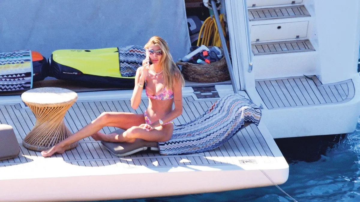 Bodrum Cennet Koyu'nda sevgilisi Burak Ateş'in teknesinde objektiflere yansıdı. Uzun süre telefonla konuştuğu görülen ünlü manken, denize girmek yerine güneşlenmeyi tercih etti.