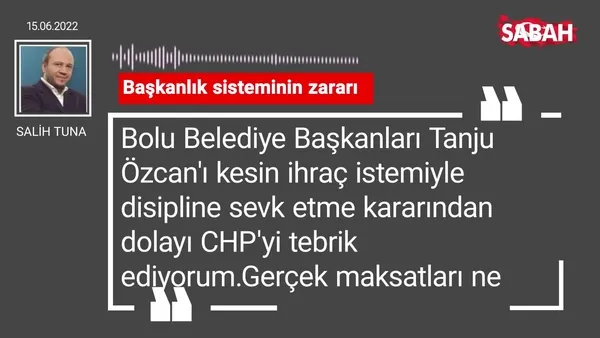 Salih Tuna'nın 15.06.2022 tarihli Sabah Gazetesi köşe yazısı...
