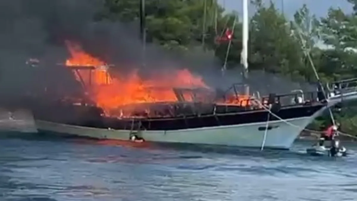 Göcek'te tekne yangını