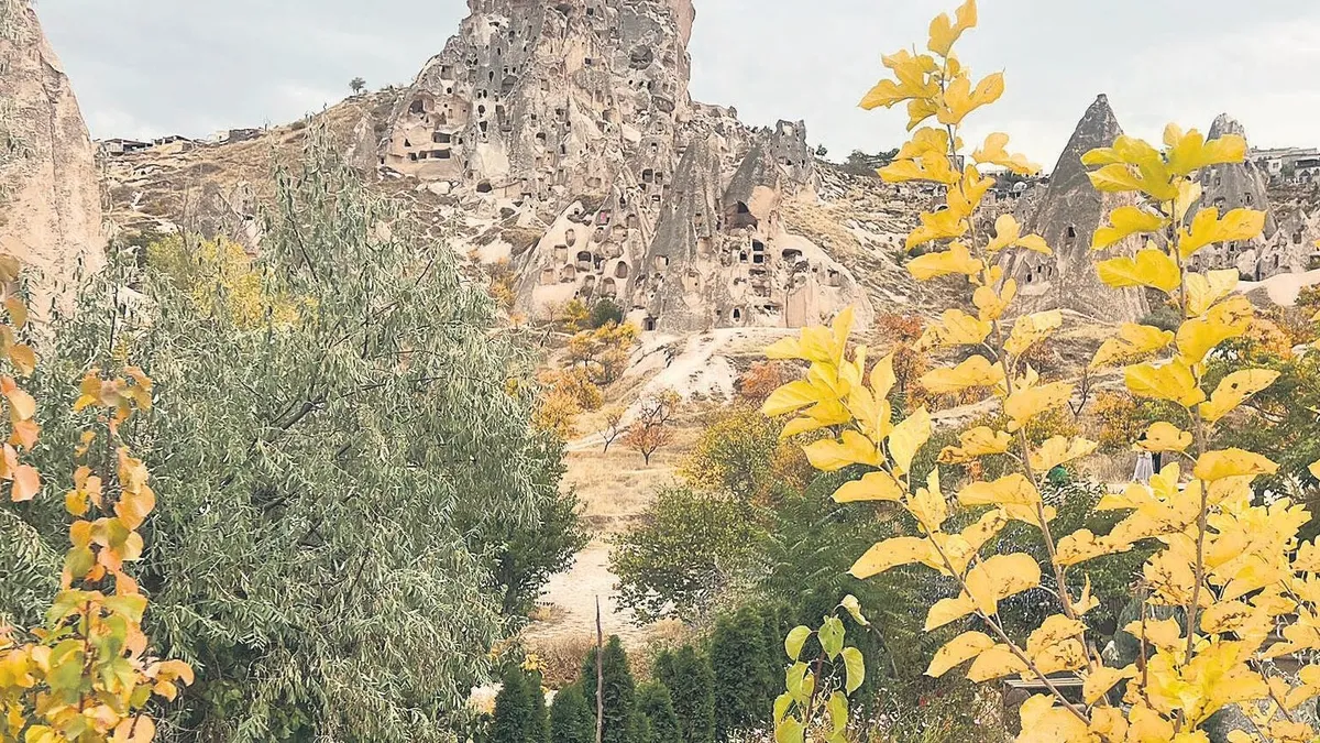 Dünyaca ünlü Kapadokya, sonbaharın gelişiyle birlikte adeta bir renk şölenine dönüştü. Kendine özgü yeryüzü şekilleriyle her mevsim farklı bir güzelliğe bürünen Kapadokya'da, peribacaları bu günlerde sarı, turuncu ve kızıl tonların oluşturduğu manzaralarla ziyaretçilerini büyülüyor. Sabahın erken saatlerinde gökyüzüne yükselen sıcak hava balonları, altın sarısı yapraklarla çevrili vadilerin üzerinde süzülerek kartpostallık görüntüler oluşturuyor. Göreme,