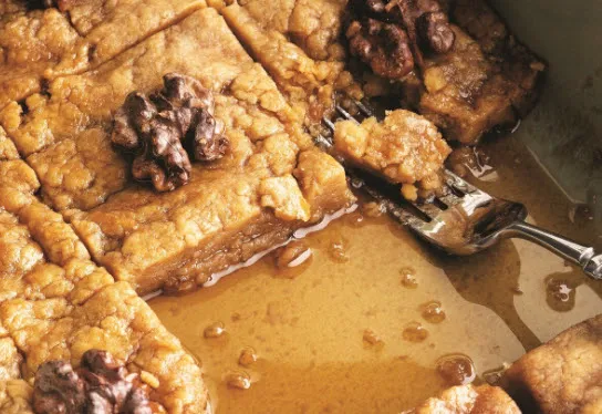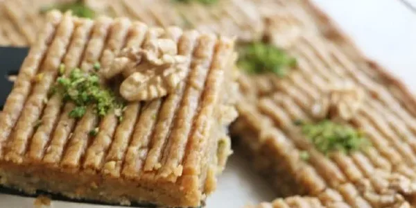 İlk sıcaklığı çıktıktan sonra soğuk şerbeti dökün. Ceviz ve antep fıstığı ile süsleyip servis edebilirsiniz.