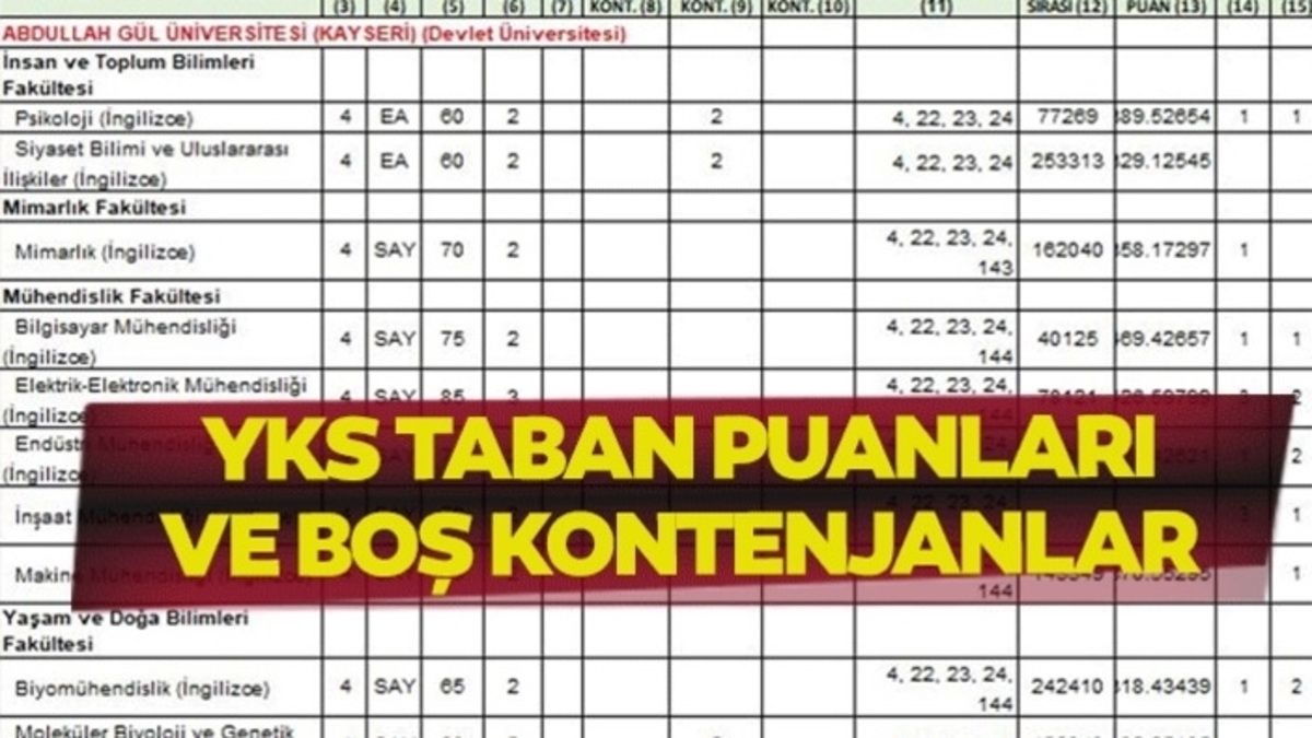 Ayrıca yayımlanan kontenjanlarda merkezi tercihler sonrasında ön lisans ve lisans programlarında boş kalan kontenjan sayısı yer aldı.