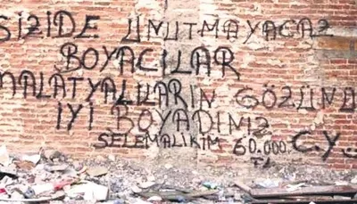 Boyacıya 60 bin lira ödeyen depremzede, ağır hasarlı bir binanın duvarına şunları yazmış: