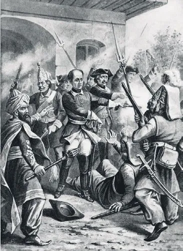 "Siperlerin müdafaasına iştirak etmek niyetiyle evinden çıkmış olan kral, adamlarının teslim olduğunu görünce, yanındaki 25-30 askeriyle tekrar eve girmek istemiş, fakat ayağı eşiğe takılmış, düşmüştü; vücudunun yarısı içeride, yarısı dışarıda idi. Kralın arkasında bulunan askerlerinin de bir kısmı düşmüşlerdi. Yeniçeriler bu küçük grubu sıkıştırmaya başladılar; derken, yeniçerilerin birinin pistolinden atılan kurşunun, kralın sol kulağını zedelediği anlaşılıyor; kralın burnunun da hafifçe yaralandığı biliniyor; bu esnada, galiba kralın bacağı da epeyce zedelenmiştir.