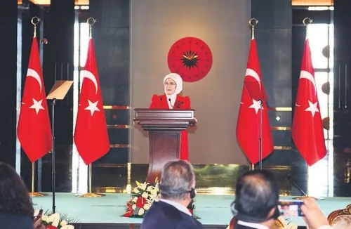 Emine Erdoğan konuşmasında, büyükelçilere çağrıda bulunarak, "Bugün küresel düzeyde etkili ve somut adımlar atmazsak, üzerinde barış ve adaleti tesis edebileceğimiz bir yaşam alanı kalmayacak. Her birinizi, tabiatın farklı coğrafyalarda sel, yangın, kuraklık olarak tezahür eden çığlığına kulak vermeye davet ediyorum.