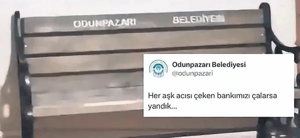 Odunpazarı Belediyesi de videoya ilgili "Bankımızı geri getirir misiniz lütfen", "Her aşk acısı çeken bankımızı çalarsa yandık" paylaşımları yaptılar.