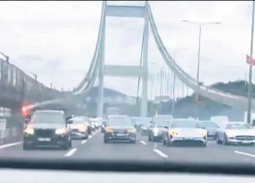 İstanbul'da Fatih Sultan Mehmet Köprüsü'nde tüm şeritleri kapatan düğün konvoyu trafiği yavaşlattı.